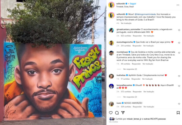 Ator Will Smith se impressiona e compartilha grafite do artista goiano