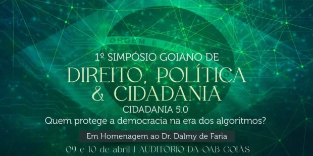 A Ordem dos Advogados do Brasil – Seção Goiás promove, nos dias 9 e 10 de abril, o 1º Simpósio Goiano de Direito, Política e Cidadania. O tema central será “Cidadania 5.0: Quem protege a democracia na era dos algoritmos?”.