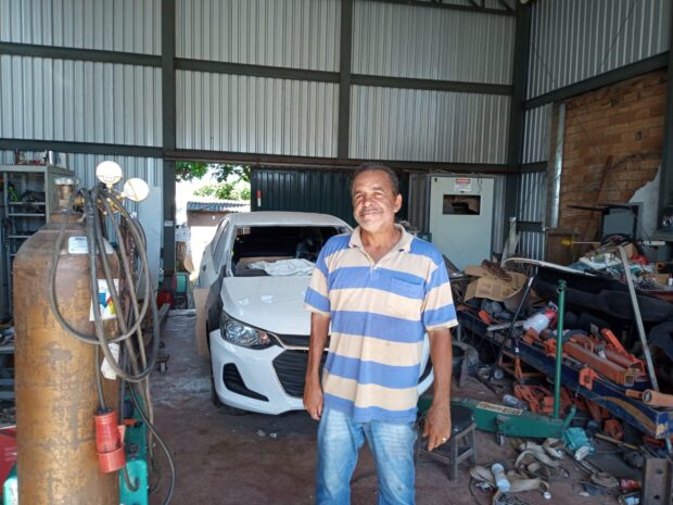 Roberto Teixeira, 61, também é morador do Emílio Póvoa e tem uma oficina onde recupera carros batidos. Ele diz que mora no bairro há 45 anos. Há dez, montou a fast funilaria que faz lanternagem e pintura de automóveis. Teixeira é casado, têm três filhos e vários netos. Ele esclarece que todos os filhos foram criados na comunidade e que um deles formou-se em Direito, a exemplo do filho do amigo Willian. “Paguei toda a faculdade particular do meu filho com o dinheiro vindo aqui da funilaria”, disse. Roberto revela que está na luta para a regulamentação da área onde mora, porque sem o título de propriedade da terra não consegue ampliar seu negócio. “Tudo que tenho foi na base da garra, da luta mesmo, nunca tive ajuda de governo. Para você ver (repórter), o bairro já tem 50 anos e não temos as escrituras. Se eu tivesse esse documento seria bem melhor. Não é fácil empreender na periferia, as pessoas têm muito preconceito, acham que todo mundo é bandido e não é. Somos todos trabalhadores honestos”, observa.