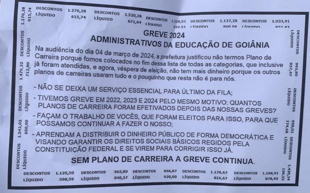- Leia também: Administrativos da educação em Goiânia retomam greve