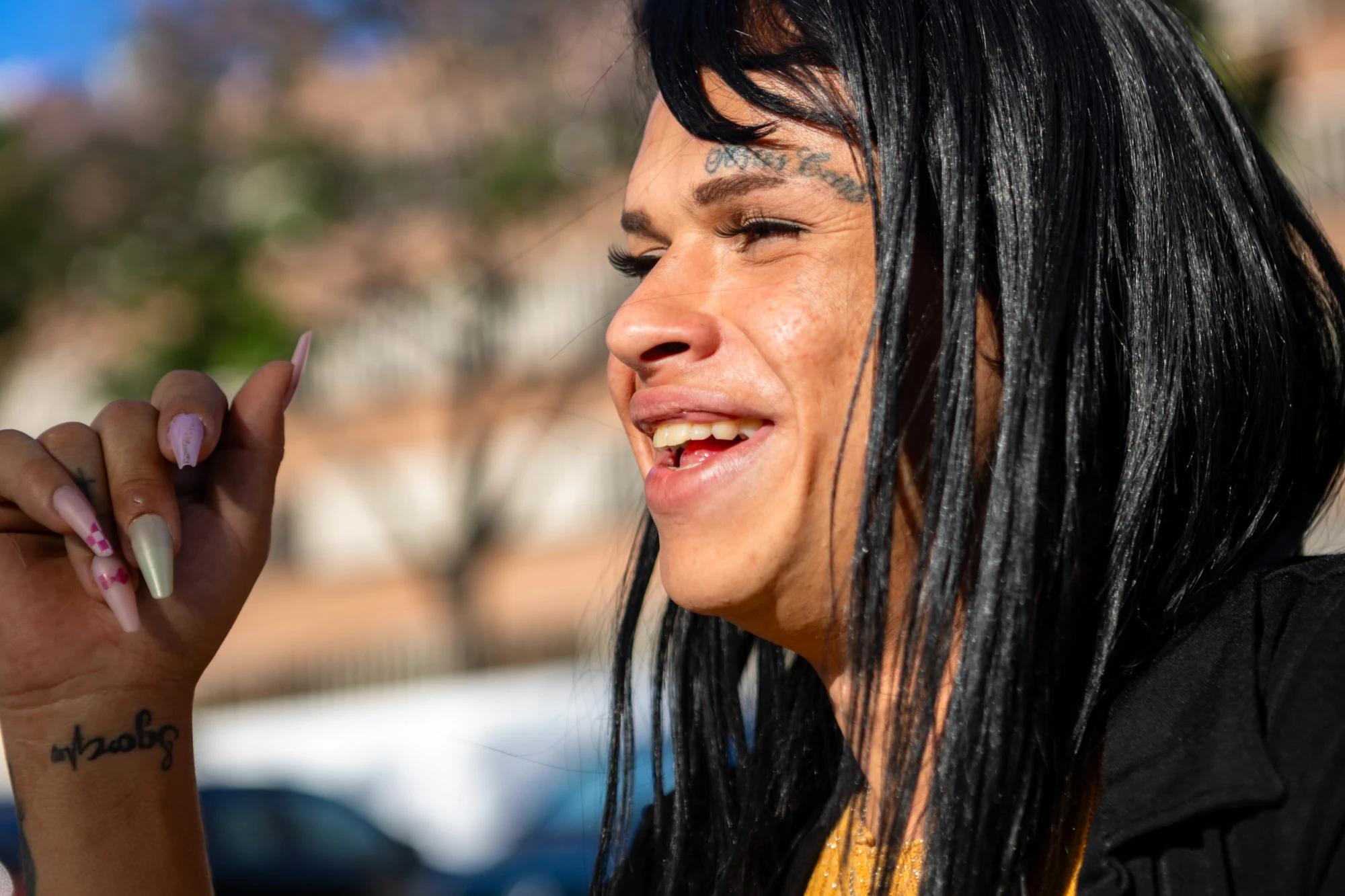 É uma mulher trans, de 29 anos, que passou anos na rua, que já teve outros nomes porque a rua exige máscaras, mas que hoje mora de aluguel com o marido e quer ser vista como trabalhadora e artista.