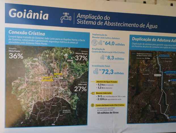 As novas obras são: Conexão Cristina, que vai promover a integração total entre os sistemas João Leite e Meia Ponte; serviços de reforço da rede na Região Noroeste; duplicação de adutora na Região Sudoeste; e ampliação da Estação de Tratamento de Esgoto do Parque Atheneu.