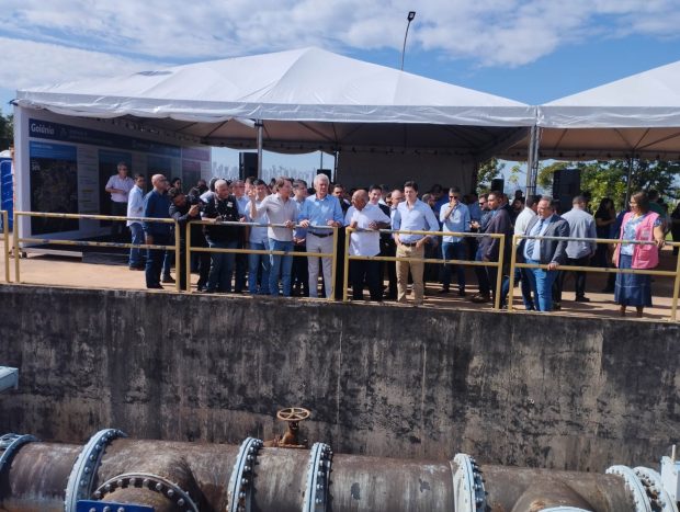 O governador do Goiás, Ronaldo Caiado (UB), inaugurou nesta sexta-feira, 8, no Centro de Reservação Vila Cristina, em Goiânia, novas obras de abastecimento de água e esgotamento sanitário da Saneago. O Governo de Goiás, por meio da Saneago, vai investir R$ 139,3 milhões, nestas obras, para ampliar e reforçar os serviços na capital. Em seu discurso, Ronaldo Caiado reforçou o compromisso de levar água de boa qualidade para todas as cidades de Goiás e de fortalecer ainda mais os serviços da Saneago.
