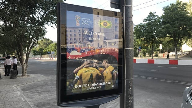 Contudo, uma propaganda que dá boas-vindas ao Brasil contém uma informação desatualizada. Nela, Daniel Alves está como um dos destaques, ao lado de Neymar e Gabriel Jesus. Mas o lateral-direito do Paris Saint Germain foi cortado da competição por causa de uma lesão no joelho.