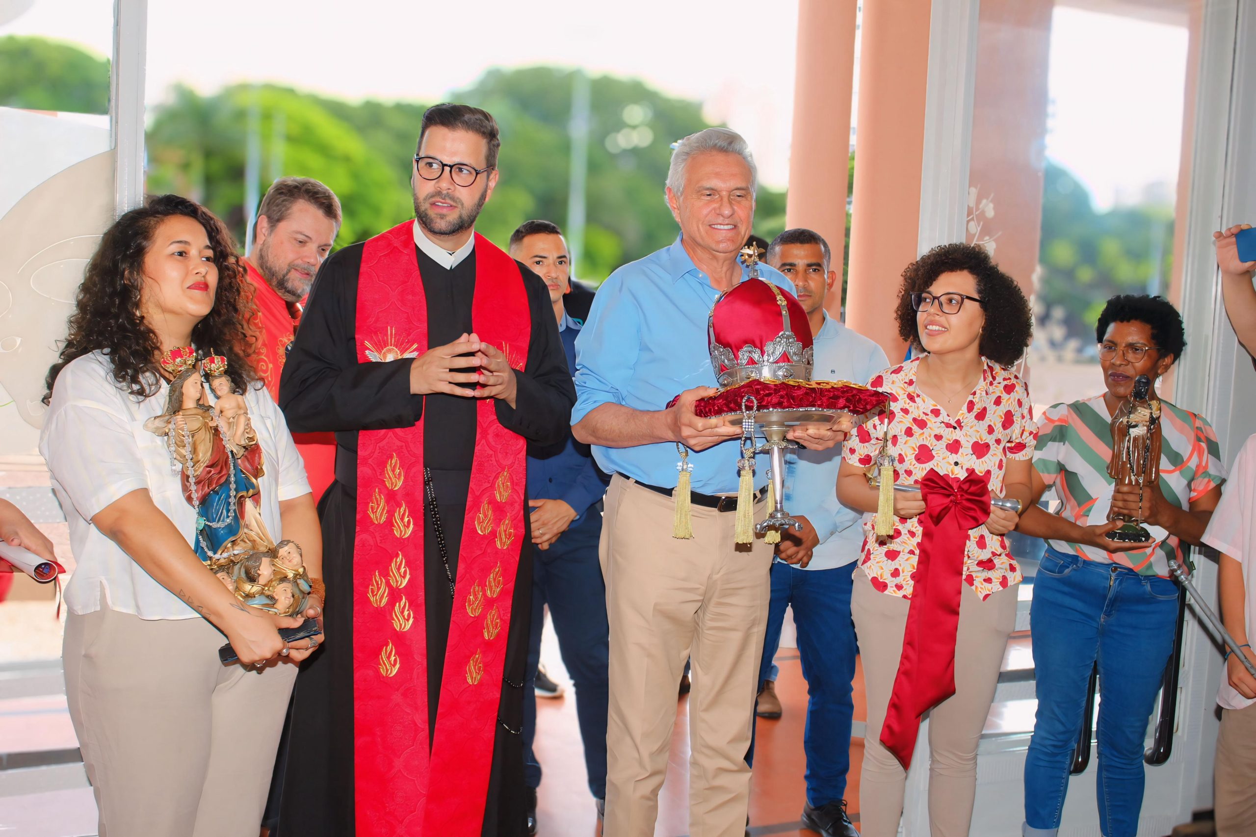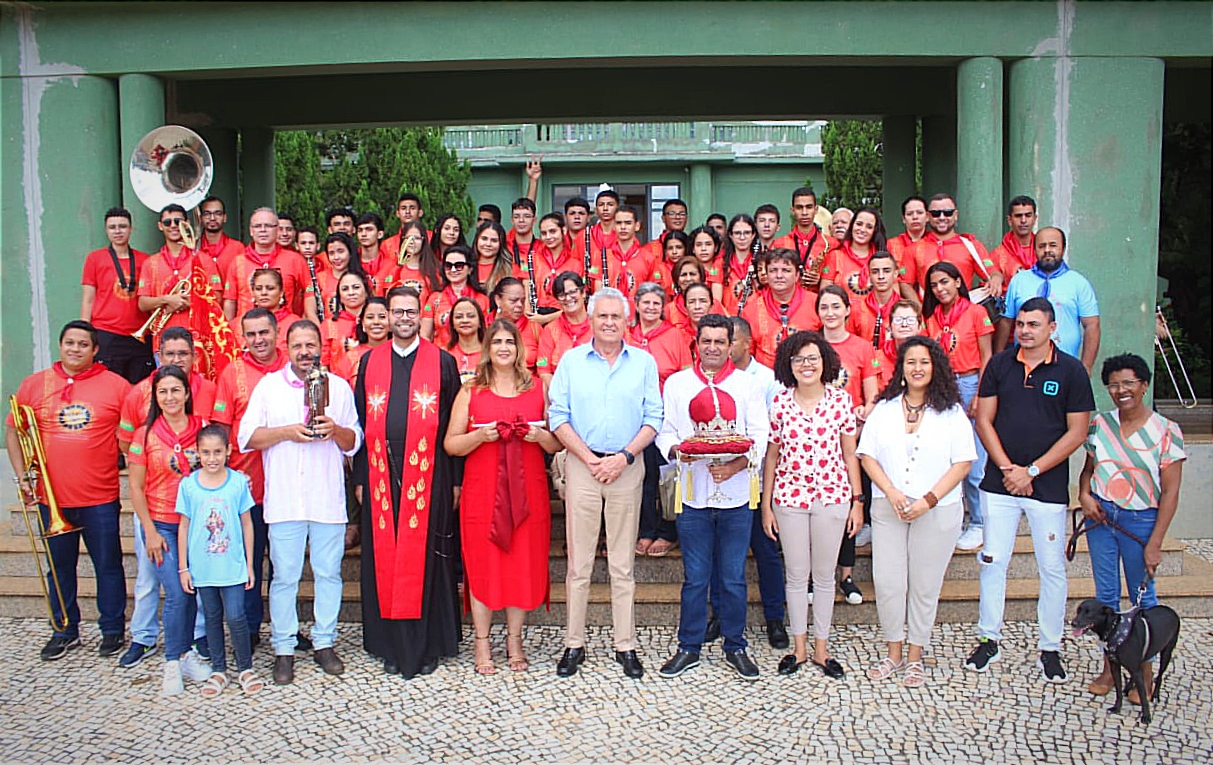 O governador Ronaldo Caiado recebeu a Folia do Divino de Jaraguá no Palácio das Esmeraldas. A popular festa do Divino teve origem na promessa que a Rainha Isabel, de Portugal, fez ao Espírito Santo pedindo que a paz reinasse em seu país. Nos primeiros festejos os peregrinos carregavam uma cópia da coroa do império que tinha como símbolo principal uma pomba branca.