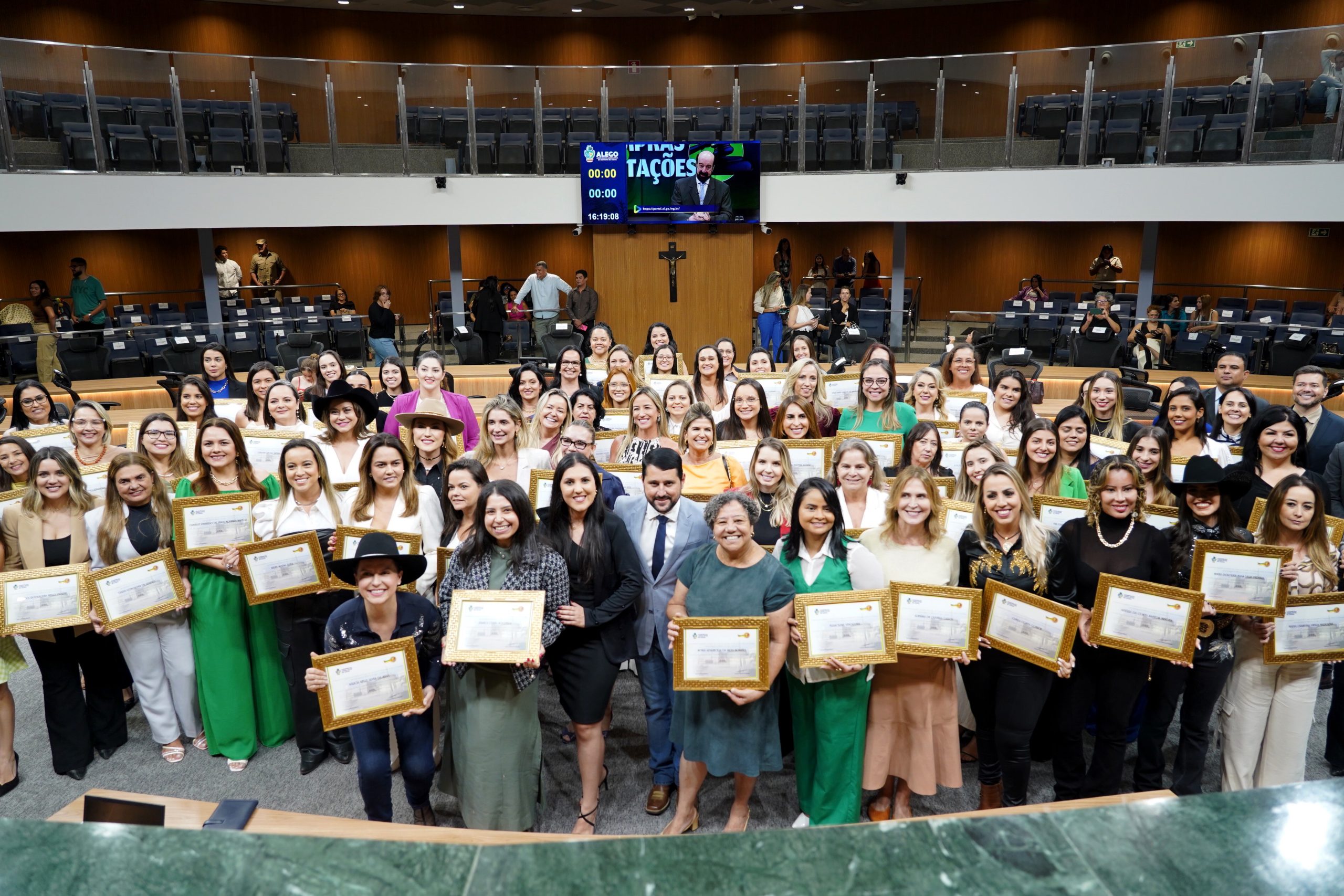 Ainda no mês das mulheres a Assembleia Legislativa prestou honenagem a várias empreendedoras e mulheres que contribuem para o sucesso do agro no estado. Produtoras rurais, empresárias e investidoras do setor receberam uma comenda na casa de leis em sessão solene de entrega da Medalha do Mérito Legislativo Pedro Ludovico Teixeira. Foto. Hellen Reis/Alego