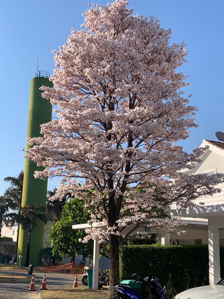 Flores brancas dos ipês contrastam com o céu azul de Goiânia nesta última semana de agosto. Temperatura desta quarta-feira, 23, ficará em torno dos 30ºC na Capital. Foto: Euler Belém
