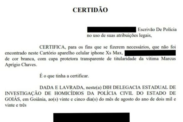 Já a Polícia Civil de Goiás informa que, segundo o delegado responsável pelo inquérito na época, foi realizada extração integral das informações do celular da vítima, bem como perícia do aparelho, a fim de subsidiar as investigações. “Depois disso, o aparelho celular foi devolvido à família da vítima, mediante termo de entrega, o qual foi juntado aos autos, como de praxe. Destarte, a PCGO esclarece que não houve extravio do aparelho das dependências da delegacia”, diz a gerência de Comunicação da PCGO.
