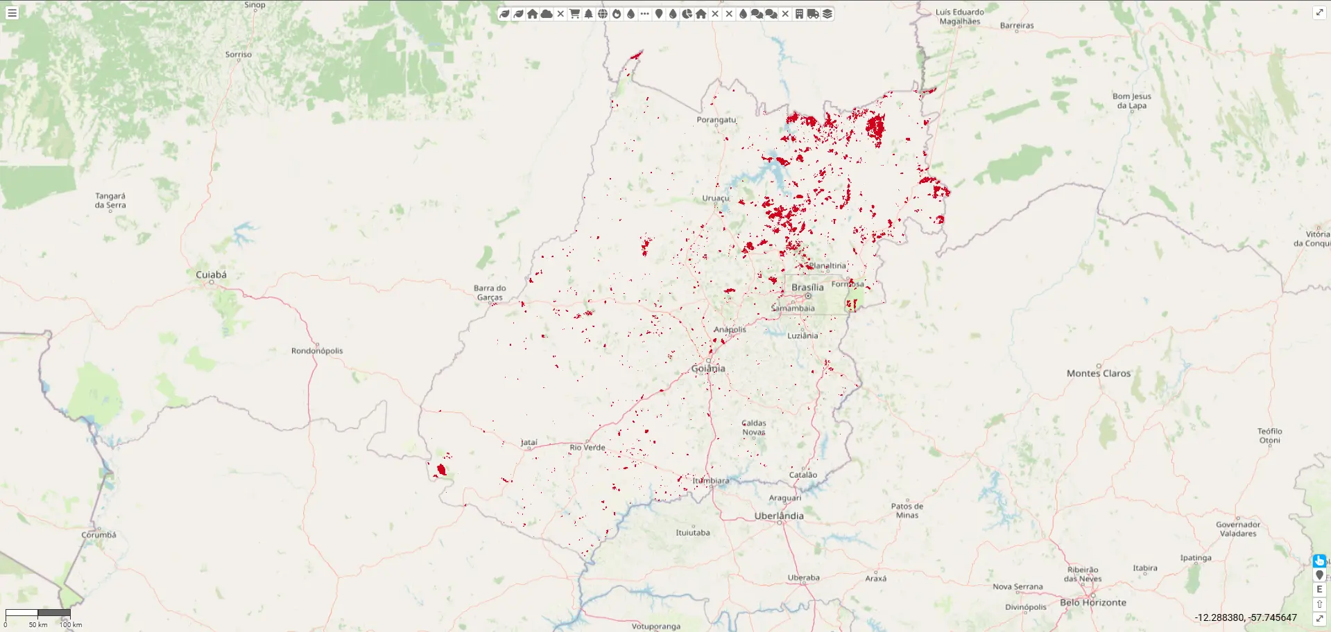 O número representa um aumento de cerca de 20% em relação a 2024, quando foram registrados 4.546 km² de áreas queimadas. Os municípios mais afetados concentram-se na região Centro-Norte do estado, com destaque para Cavalcante (64 km² queimados), Niquelândia (62 km²) e Monte Alegre de Goiás (50 km²), áreas com forte presença do bioma Cerrado.