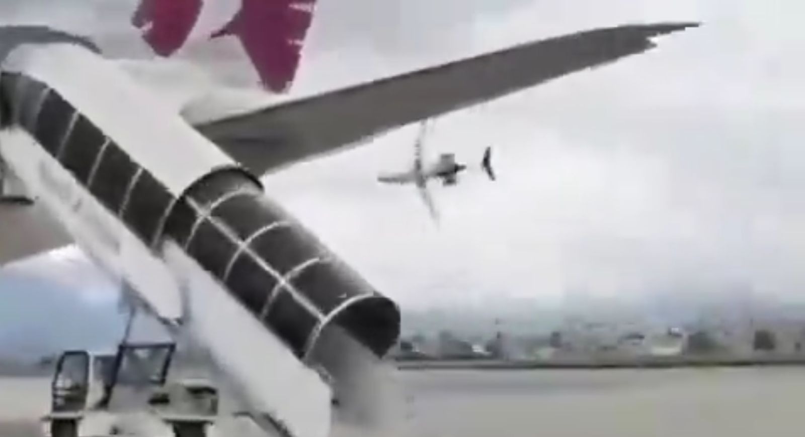O momento do acidente foi captado por diversas câmeras de segurança no aeroporto. Nas gravações, o avião é visto se inclinando bastante para a direita e perdendo muita altitude. Em seguida, a aeronave se choca com o chão e é possível ver uma grande explosão antes dos bombeiros chegarem nos destroços para iniciar o combate às chamas.