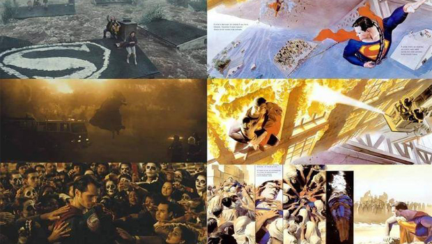 Em momentos específicos do filme, os leitores dos quadrinhos tiveram a sensação de estar assistindo, em “live action”, cenas de determinadas HQs. No início do filme, quando mostram a morte dos pais do Homem Morcego, Thomas e Martha Wayne, a cena é retirada dos quadrinhos “Cavaleiro das Trevas” (TDK). Outra cena marcante com essa pegada é quando Clark Kent, o Superman, deixa de lado sua briga contra Bruce para salvar uma vítima de um incêndio no México — essa parte recria alguns quadros de “Superman: Paz na Terra”. Sem contar as cenas que são referência aos jogos “Injustice: Gods Among Us” e “Batman: Arkham”.
