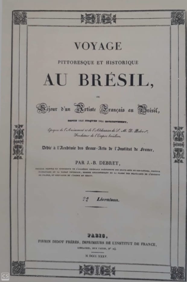 Os trabalhos do alemão Rugendas e do francês Debret “mostram cenas da escravidão em contextos diferentes – o rural e o urbano, o cotidiano de trabalhos forçados e os raros momentos festivos.” Publicado no mesmo ano em alemão “Malerische Reise In Brasilien” (Paris, 1835) e em francês “Voyage Pittoresque au Brésil” (Paris, 1835), o livro do pintor Johann Moritz Rugendas — traduzido no Brasil como “Viagem Pitoresca Através do Brasil” (Belo Horizonte: Editora Villa Rica, 1994) —, “ampliou a repercussão da descoberta das novas imagens autênticas do Brasil pelo público culto europeu, que agora chegavam a mais de trezentas se adicionadas as gravuras dos dois álbuns.”
