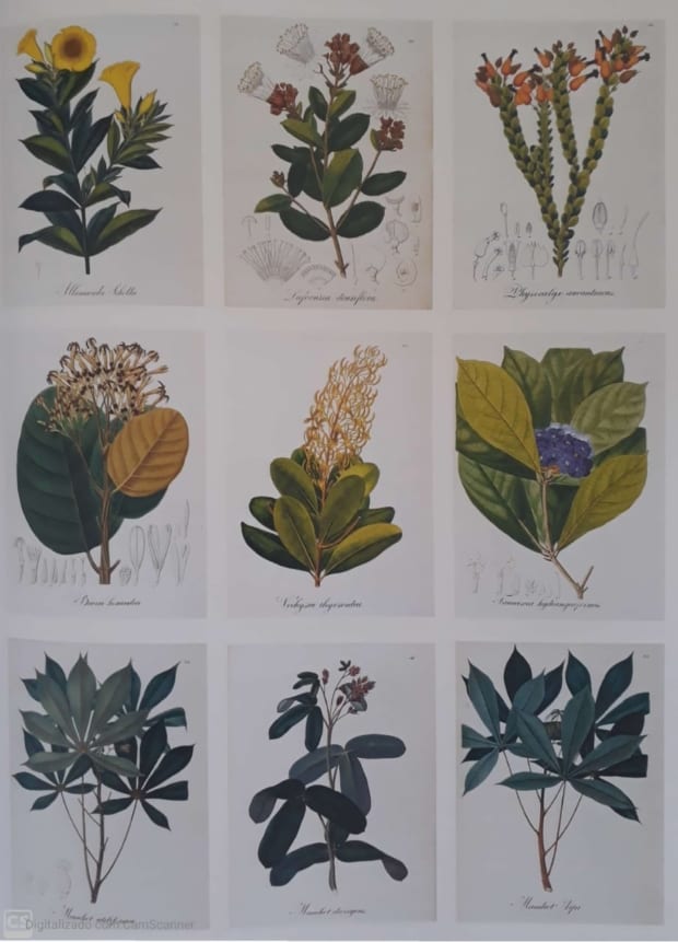 É na secção de fauna e flora que são localizados os mais belos livros e gravuras da coleção. Da série constam os seguintes títulos: “Histoire Naturelle des Tangaras, des Manakins et des Todiers” (Paris, 1805), de Anselme Desmarest, o primeiro álbum de pássaros do Brasil; “Simiarum et vespertilionum Brasiliesium species novae” (Munique, 1823), de Spix, catálogo de todos os macacos brasileiros conhecidos à época no país; “Genera et species Palmarum” (Munique, 1823-1831) de Martius, impressionante realização gráfica entre os álbuns dedicados à vegetação brasileira no século XIX; além do clássico de Saint-Hilaire, “Plantes usuelles des Brasiliens” (Paris, 1824).