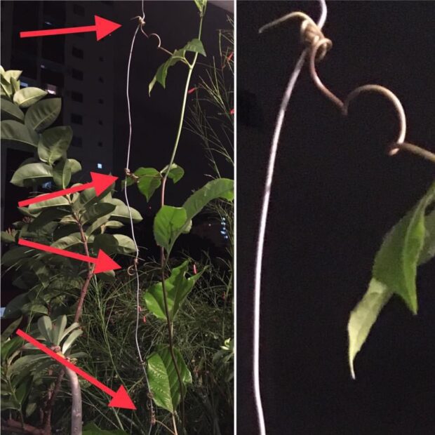 Num bate-papo com o amigo entomólogo, botânico e escritor Nilson Jaime, contei a ele sobre o episódio das gavinhas e até lhe mandei foto. Foi aí que ele então me disse que esse fenômeno se chama tigmotropismo. Enfim, ganhei dele uma aula preciosa de botânica, voltada à resposta das plantas em relação a movimentos e estímulos que recebem no seu processo de desenvolvimento.