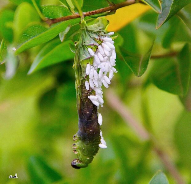 Muitas borboletas são interrompidas ainda no estágio de lagarta. Por trás dessa interrupção, os anus (brancos e pretos), almas-de-gato, corrupiões (também conhecidos com sofrês) e outras espécies de aves que se alimentam de tais insetos. E há ainda um dizimador muito perigoso: os inseticidas, que aniquilam inúmeros insetos, principalmente o animalzinho mais importante do mundo: as abelhas. As lagartas também são vítimas de algumas vespas, que depositam seus ovos no corpo daquelas, e, as larvas, ao eclodirem dos ovos, vão se alimentar da lagarta hospedeira.