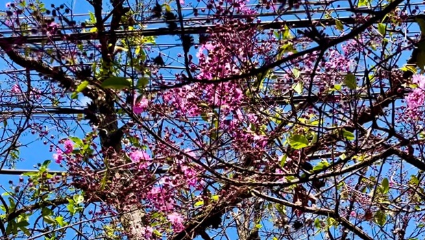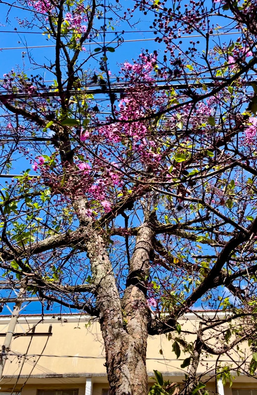 Nossa conversa foi mais sobre árvores enquanto lanchávamos. E uma espécie predominou: um cega-machado na Rua 61, Centro, em frente a um prédio da Seicho-No-Ie: religião de origem japonesa, cujo significado é Casa do Crescimento.