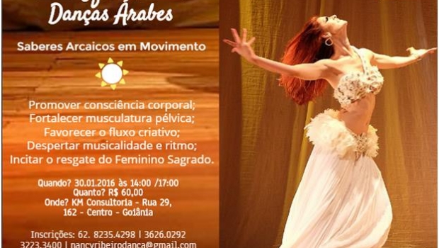 A fim de promover a consciência corporal, fortalecer a musculatura, despertar a musicalidade e o ritmo e favorecer o fluxo criativo, a pesquisadora, artista e coreógrafa Nancy Ribeiro ministra a oficina Dança Árabes: Saberes Arcaicos em Movimento. Direcionado ao público feminino, a oficina, realizada na tarde do sábado 30, na KM Consultoria (Rua 29, no Centro), custa R$ 60. As inscrições são feitas pelo e-mail [email protected] ou pelo contato (62) 8235-4298.