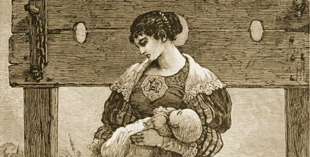 Aquela moça aparentemente desamparada, apertava a criança conta o corpo, querendo ora protegê-la, ora assegurar que ninguém a tiraria de seus braços e fazia questão de deixar que todos vissem o seu estigma, a letra “A” escarlate no peito.