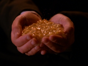 Podemos então afirmar que, em Twin Peaks, enquanto a eletricidade serve de medium entre os mundos que por ora chamamos de espiritual e físico, a madeira serve como suporte, como substância absortiva de entes e criaturas de outra dimensão. E daí talvez os demônios lenhadores em Twin Peaks, que rescendem a carvão e óleo, que destroem esses elementos dóceis da natureza. Analogicamente, temos o fogo, outra temática recorrente da obra de Lynch, que invariavelmente se refere às forças descontroladas e destrutivas dos instintos ou dos poderes invisíveis. Bob, a entidade assassina, vive sob a égide do fogo; quando possui Leland em sua infância, suas palavras são simbólicas: “quer brincar com o fogo?”, ou quando, abusando de Laura e arrastando-a à profunda corrupção, é o único homem que, segundo ela, “desperta seu F-O-G-O”. É interessante ainda o fato de que Laura se refere a esse indivíduo, que posteriormente descobrimos tratar-se de Bob, como o “homem misterioso” – a mesma designação para a entidade assassina de Lost Highway.