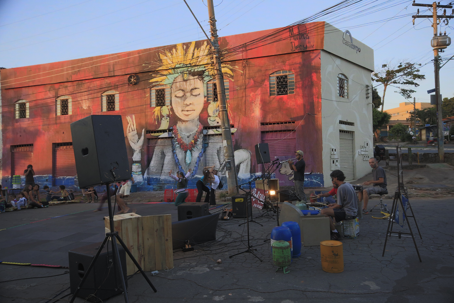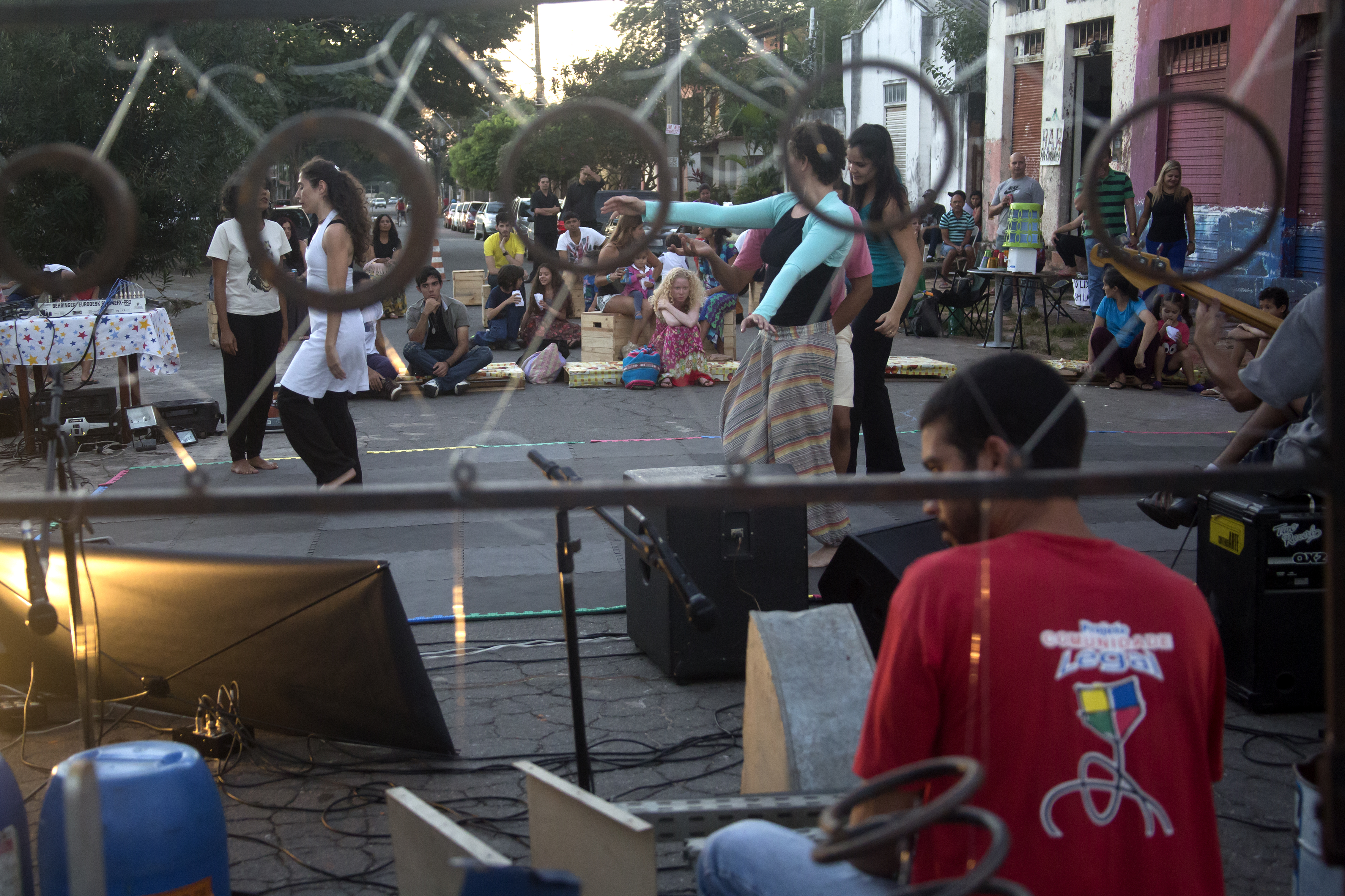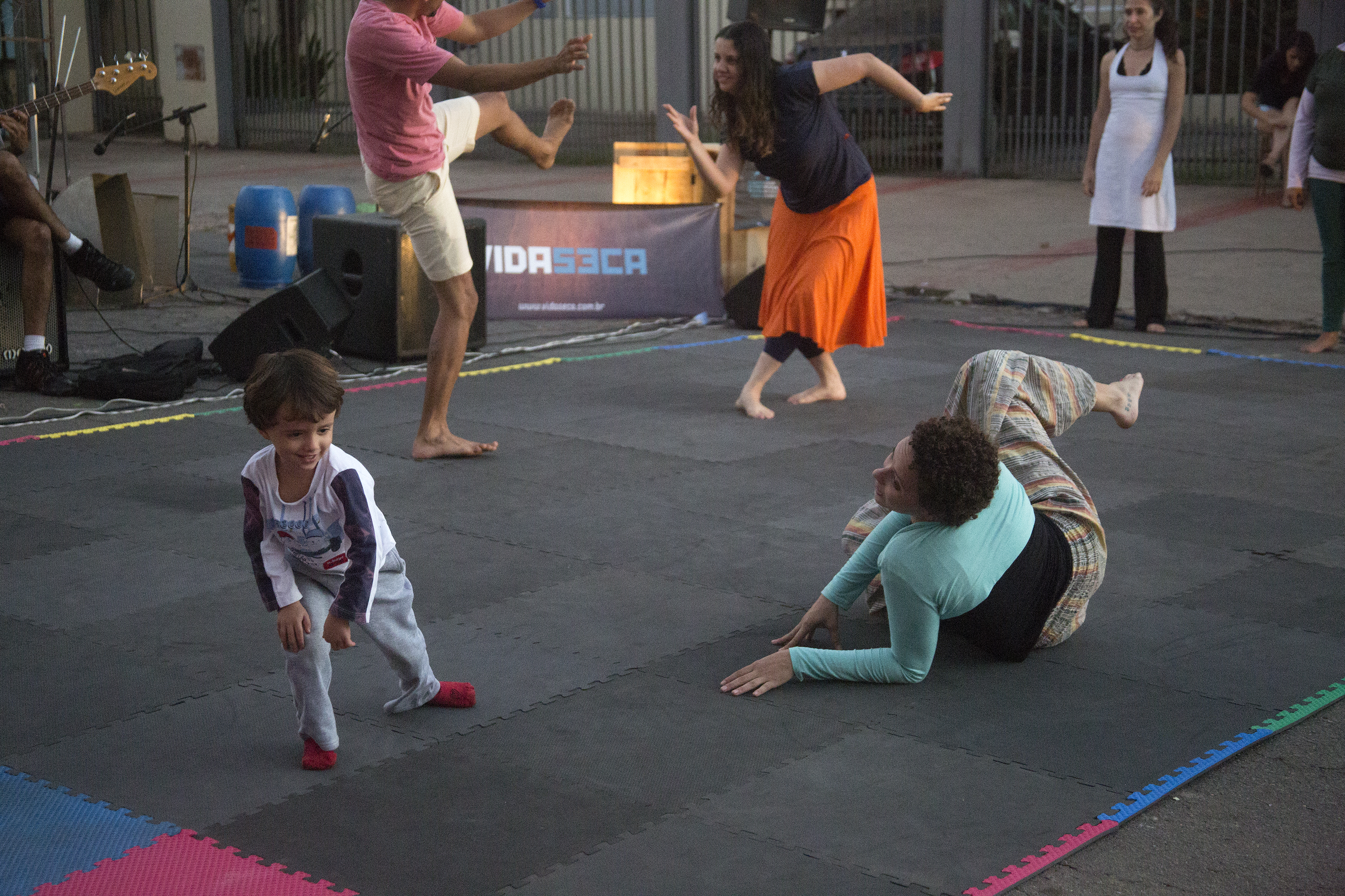 Tinha camisas coloridas, calças balançantes, pés já destemidos e nus, brincando de dança. Tinha outro pessoal que embalava sons em instrumentos, em corpos entregues a inventividade da vida. Era tarde de “Por Acaso”, coisa de improviso. É vida, dança, música, teatro. É intervenção urbana livre. Aberta. Numa mistura de artistas e não artistas, os desavisados vão se convidando a entrar no tatame, após verem tanta entrega ao desconhecido. É encontro.