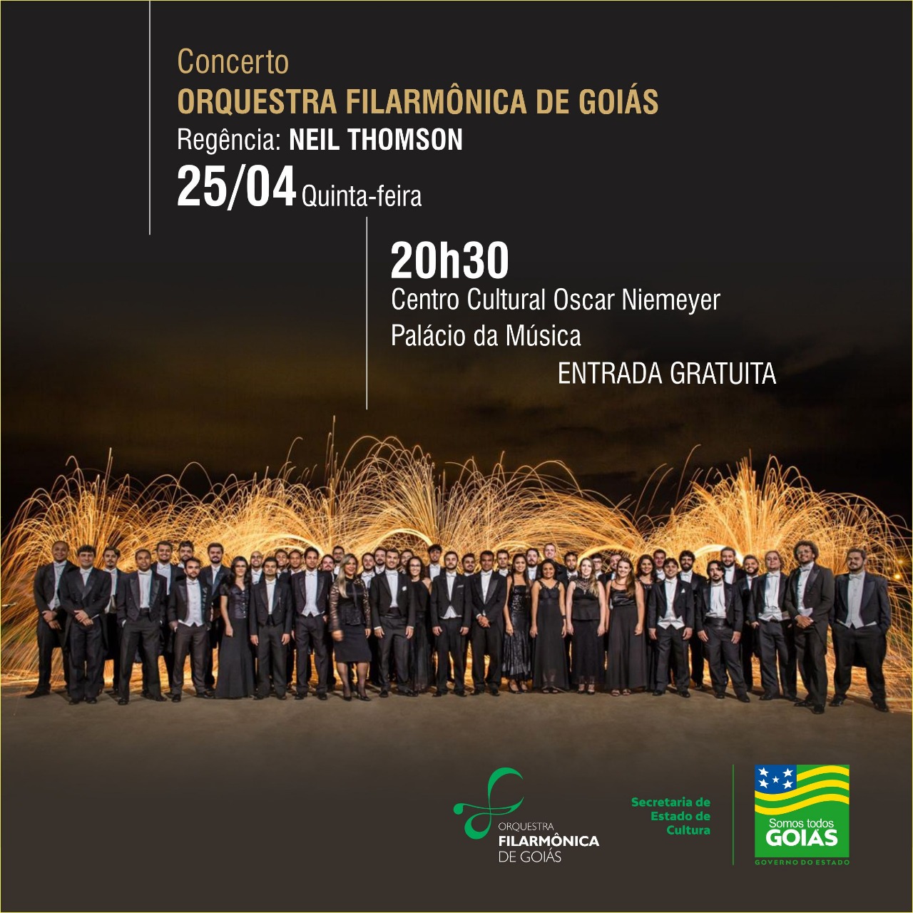 O maestro Neil Thomson é o regente titular da Orquestra desde 2014. Versatilidade, ousadia e uma imensa vontade de construir um projeto musical de qualidade que beneficie toda a população goiana, sem distinção. Com esse objetivo, o consagrado maestro britânico Neil Thomson chegou a Goiás em 2014 e aqui permanece trabalhando arduamente para que a Filarmônica de Goiás se consolide como uma das principais orquestras do Brasil.