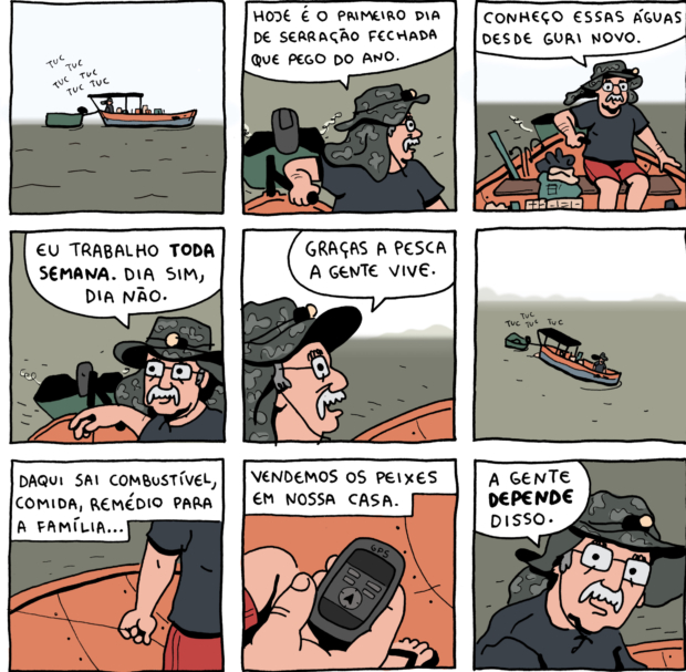 Atualmente estou entrevistando moradores de Porto Alegre. Já entrevistei Janja, moradora do Quilombo dos Alpes; Deraldo, pescador das águas do Lami; Amélia, médica de Família e Comunidade no Porto Novo, entre outros. A intenção é até o ano que vem entrevistar 15 pessoas e transformar esse material em um livro chamado “Porto Alegre em Quadrinhos”. Um processo parecido com o que realizei em 2016. Entretanto, o tempo em que ficava conversando com o entrevistado antes era de uma hora, agora, neste novo projeto, tento viver algo com o personagem. Como no caso do pescador Deraldo; dormi na casa dele e de manhã cedo, às 4h30, saímos para pescar.