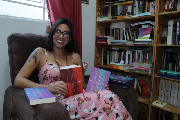 Ela aponta uma pilha de no mínimo 30 livros que estão reservados sob um móvel ao lado da escrivaninha. São as leituras do momento. Como uma malabarista, intercala uma leitura e outra, entre trabalhos, prazer e estudos de doutorado.