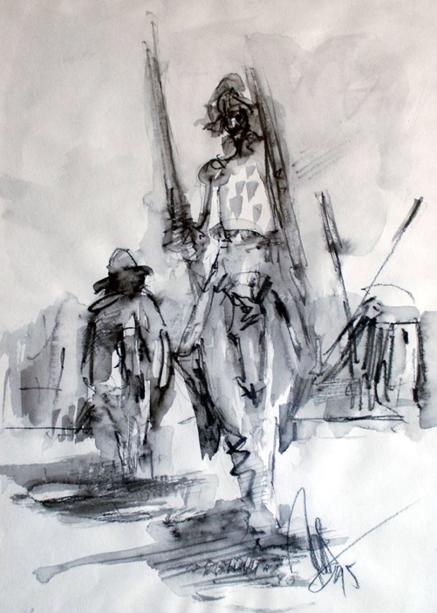 Não tinha paciência para esperar a tinta a óleo secar. Por isso preferia a acrílica. Sem se importar com a mensagem ou a função social. Roos não tinha intenções de protesto. Queria pintar o seu íntimo. Precisava do desenho para expressar a si mesmo. Sua luta era mais humana. Como Dom Quixote, digladiava consigo mesmo, na procura desenfreada de explicar o caos das emoções. Seu embate era a tela branca. O pincel sua lança. As tintas, o escudo. A técnica, uma verdadeira armadura. A obra acabada, o alívio no beijo de Dulcinéia.