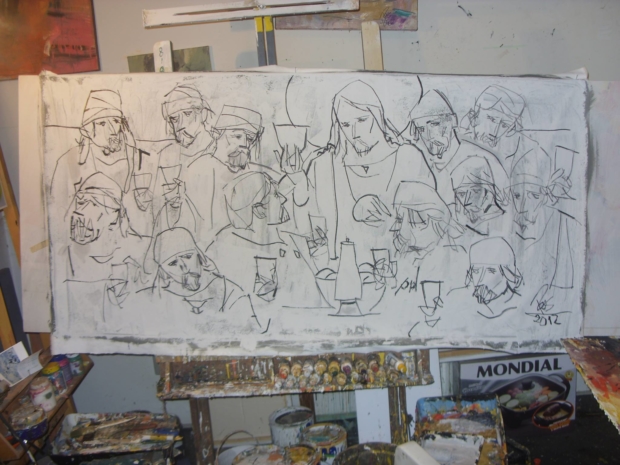 Na “Santa Ceia” de Roos, encontramos amigos e personagens da vida real do pintor. Qualquer um seria bem recebido no banquete do artista. Que não se esgotava. Sentia prazer em descobrir novas técnicas. Estudava arduamente. Mas sem se apegar a uma escola em particular. Gostava de misturar, de experimentar. Era livre. Isso sem deixar de ser fiel ao seu traçado. O escritor Guimarães Rosa anotou: “Não me submeto à tirania da gramática e dos dicionários dos outros. A gramática e a chamada filologia, ciência linguística, foram inventadas pelos inimigos da poesia”. Pois Roos conhecia as gramáticas dos pintores, suas linhagens e regras, mas, quando criava, livrava-se, talvez parcialmente, da angústia da influência e, em definitivo, prevalecia o artista plástico Roos.