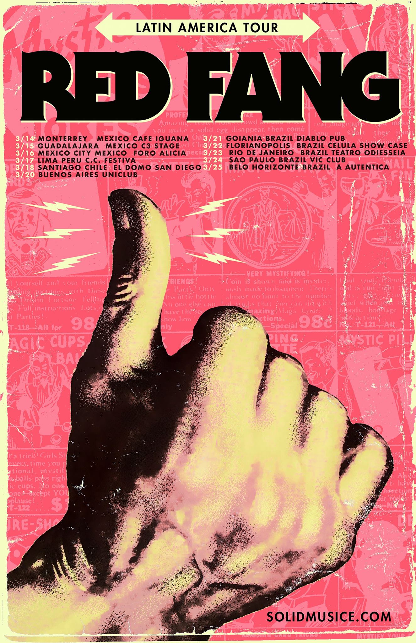 Figura carimbada nos principais festivais de música do mundo, o quarteto roqueiro Red Fang se apresentará em Goiânia (21/3), Florianópolis (SC) no dia 22 de março, Rio de Janeiro (23), São Paulo (24) e encerra a turnê na América Latina em Belo Horizonte no dia 25. Antes, a banda de Portland passa pelo México com três datas (14, 15 e 16), Peru (17), Chile (18) e Argentina (20).