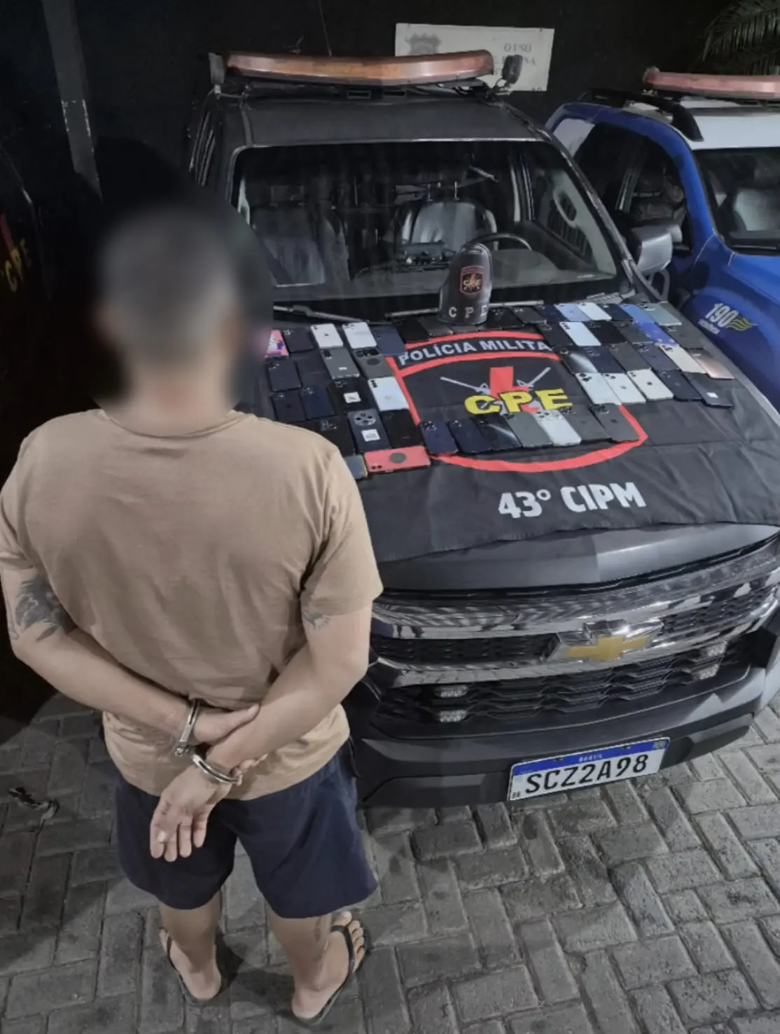A partir da abordagem, os policiais realizaram diligências no apartamento do suspeito, localizado no Residencial Santa Fé, em Aparecida de Goiânia, onde foram encontrados outros 50 aparelhos celulares, totalizando 54 itens recuperados.