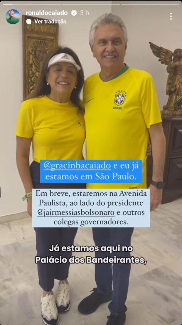 Acompanhado da primeira-dama Gracinha Caiado, o governador de Goiás postou nas redes sociais tanto sua presença no Palácio do Bandeirante, quanto trechos de caminhada na Av.Paulista. De acordo com a assessoria, ele optou por não discursar no dia de hoje.