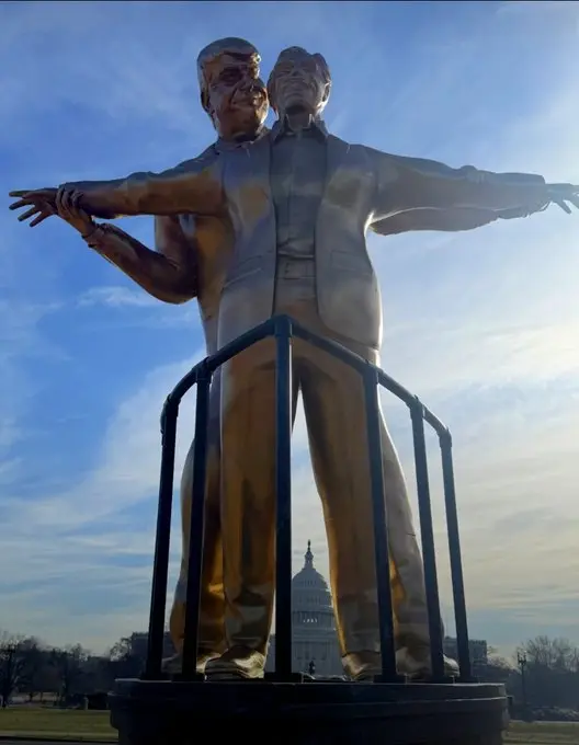 Segundo o coletivo, a obra busca ironizar a relação de amizade entre os dois, marcada por festas luxuosas e viagens, conforme descrito em documentos e reportagens sobre Epstein. O coletivo já havia realizado outras ações semelhantes: em janeiro, expôs um bilhete de aniversário atribuído a Trump, e no ano passado apresentou uma estátua intitulada “Melhores Amigos Para Sempre”, também no National Mall.