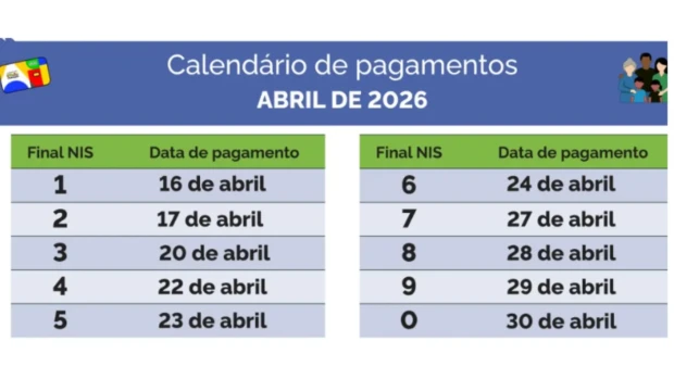 Confira abaixo o calendário de pagamentos conforme o final do NIS: