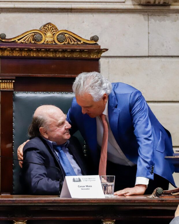 Na tarde desta quarta-feira, 18, o governador Ronaldo Caiado (UB) participou da sessão da Câmara Municipal do Rio de Janeiro que homenageou os 80 anos do atual vereador e ex-prefeito da capital fluminense, Cesar Maia (PSD). O encontro foi recheado com autoridades conhecidas pelos cariocas dos três âmbitos, como o ex-presidente da Câmara dos Deputados, Rodrigo Maia (PSD) e o ex-governador Luiz Fernando Pezão (MDB).