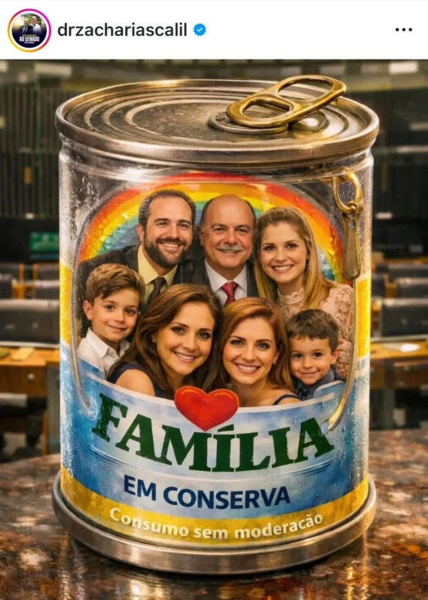 A representação gerou reação imediata entre simpatizantes da direita e do conservadorismo. Como resposta, usuários e lideranças políticas passaram a utilizar ferramentas de Inteligência Artificial para criar imagens próprias, nas quais aparecem retratados dentro de latas, acompanhadas de frases como “Família em Conserva”, “Minha família conservada por Jesus Cristo”, entre outras variações com forte apelo religioso e ideológico.