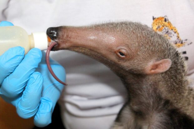 Alguns tamanduás filhotes chegam resgatados após a mãe ter morrido vítima de atropelamento em rodovias e precisam de cuidados especiais, como leite e ração especial. Para ter ideia, nesses casos o leite oferecido aos tamanduás custa cerca de 100 reais o litro. É leite de gata em pó, que, como explica o biólogo, o único que tem as proteínas necessárias para a sobrevivência do animal. “As despesas aqui são muito altas. A ração que damos para as araras custa 40 reais o quilo”, diz.