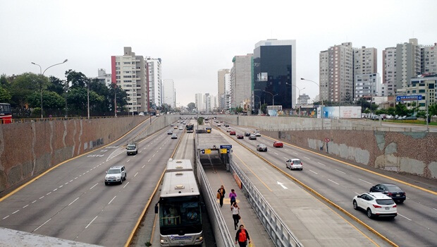 Gosto de andar a pé em cidades que não conheço por um motivo simples: é impossível conhecer uma cidade andando de carro — além de ser mais caro. Assim, a certa altura da Avenida Alfredo Benavides, me deparei com a Via Expressa Passeo de la República. Trata-se de uma trincheira de seis pistas que funciona como corredor de trânsito rápido e também abriga o BRT Metropolitano de Lima.