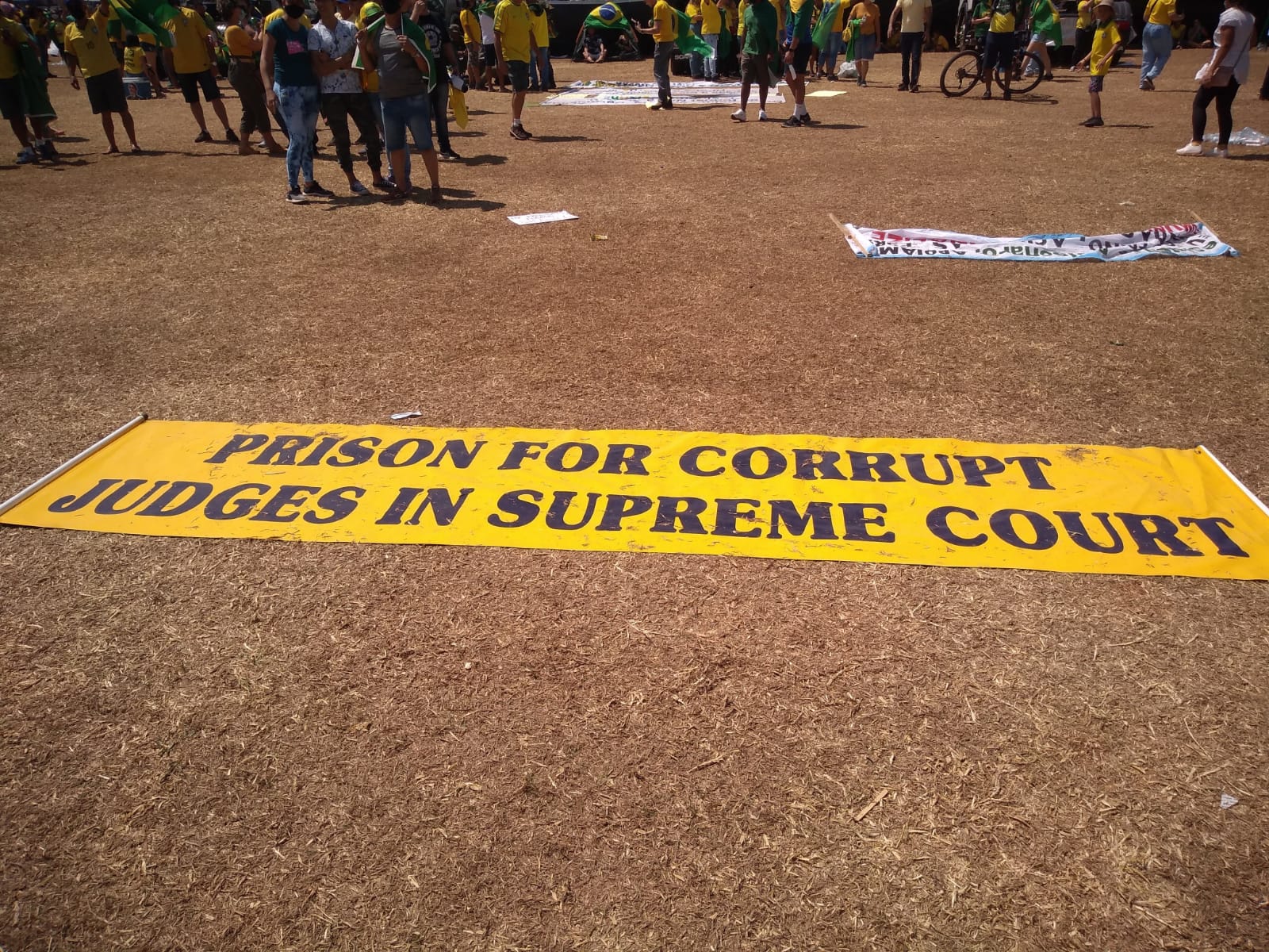 Presente na manifestação durante boa parte do dia, o professor Roni ressalta a diversidade de faixas estendidas e erguidas pelas pessoas, sendo que cada uma delas continha um objetivo diferente que havia feito as pessoas estarem ali. No entanto, ressalta que a grande maioria desses cartazes pedia pela exoneração imediata e prisão dos ministros do Supremo Tribunal Federal (STF). Isso, porque assim como o próprio presidente, que nas últimas semanas não andava com uma harmonia muito significativa com os poderes Legislativo e Judiciário, especialmente o segundo, a ideia contra as constantes interferências do STF e de seus ministros estava presente na motivação de vários que estiveram presentes em Brasília, naquela ocasião.