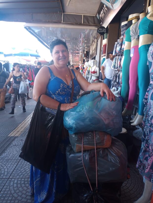Helena dos Santos Nunes, de 60 anos, vende meias e sacolão na calçada. Natural do estado do Maranhão, ela diz que não planeja abandonar as vendas, mesmo diante do risco de perder tudo. “Há cinco anos que vendo aqui e, graças a Deus, tem valido a pena. É daqui que tiro o sustento diário, não está nos meus planos abandonar meu ponto de venda”, conta.