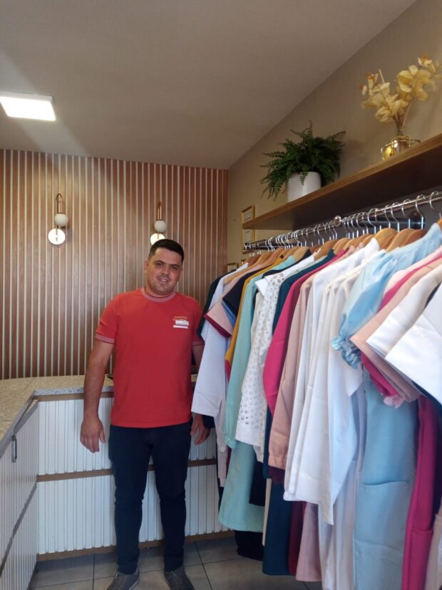 Daniel de Melo Silva, de 37 anos, morador de Goiânia, é responsável pela gestão de uma das três lojas localizadas na região da 44 especializadas em vestuário na área da saúde. Ele conta que tudo começou durante a pandemia da covid-19, quando o que parecia ser uma crise se transformou em uma oportunidade.