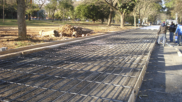 O aço tem a função de evitar as quebras das chamadas juntas construtivas, que ficam no meio do asfalto, e geram aqueles “degraus” na pista quando estão desgastados. Com o uso do aço, essas juntas são descartadas.