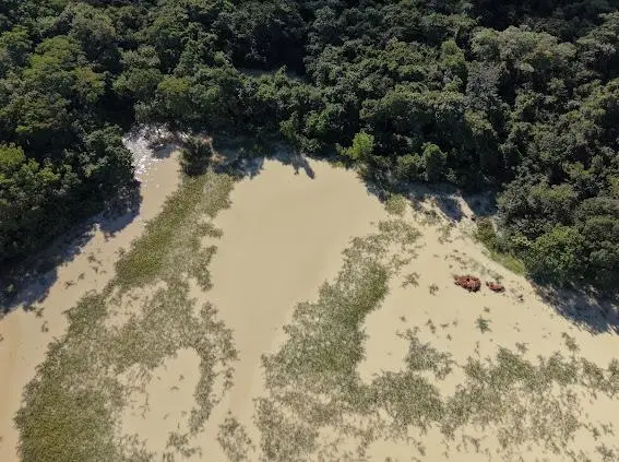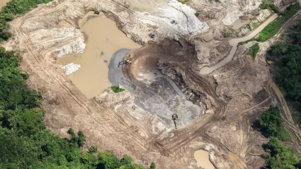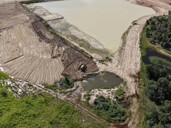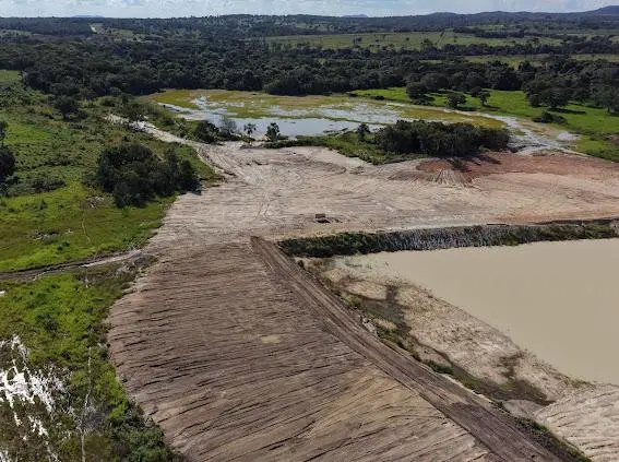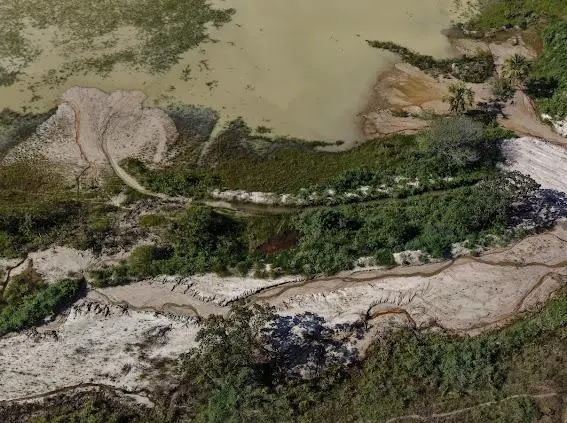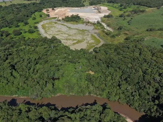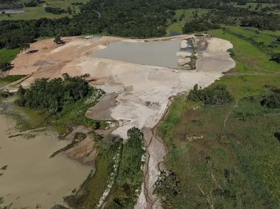 Entre os elementos descritos estão escavações de grande escala, uso de escavadeiras hidráulicas, construção de barragens e instalação de equipamentos pesados. O conjunto sugere, em tese, uma operação de lavra em funcionamento, atividade que exige autorização específica, inexistente até o momento segundo os dados citados na denúncia.