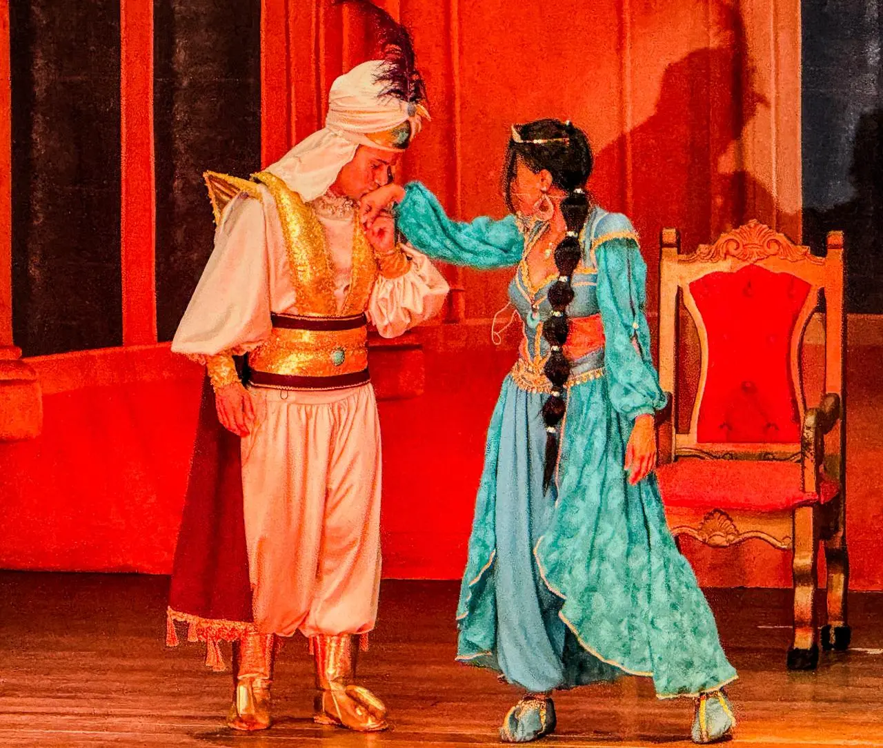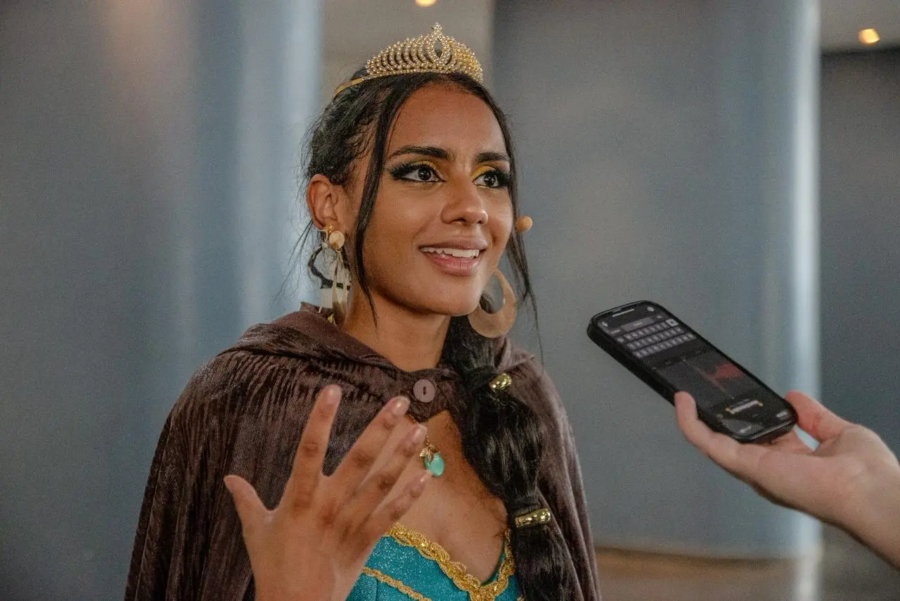 No espetáculo, Marcela interpretou Jasmine, personagem que sempre a fascinou. Diferente das princesas tradicionais, Jasmine é marcada pela força e pelo desejo de liberdade. “Ela não é aquela princesa do larararará, ela é uma princesa muito empoderada. O pai a protege demais, não deixa nem sair do castelo. Ela se sente aprisionada e não tem voz, porque só os homens podem falar”, explicou.