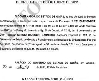 Nos últimos 20 anos, Sérgio Baiocchi esteve em diversos postos na Unimed Goiânia. Entre 2011 e 2015, na gestão do ex-governador Marconi Perillo (PSDB), acumulou os cargos de Assessor Especial no Governo de Goiás, que geralmente exigem compatibilidade de horário.