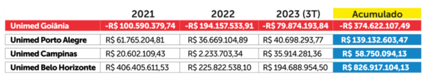 Previstas para março deste ano, as eleições da Unimed Goiânia já movimentam médicos da categoria. Em site recém lançado, chapa de oposição à atual gestão levanta questionamentos sobre a eficiência da presidência da cooperativa. Ao apresentar dados comparativos, a chapa demonstra que enquanto outras Unimeds de porte semelhante, como Porto Alegre, Campinas e Belo Horizonte, encerram o ano com resultados positivos, a Unimed Goiânia acumula mais de R$ 374 milhões em resultados operacionais negativos desde 2021.