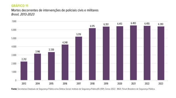 Segundo o Anuário Brasileiro de Segurança Pública, policiais civis e militares matam mais de seis mil pessoas por ano, desde 2018. Contabilizando o número total de óbitos registrados, são mais de 38 mil pessoas mortas durante abordagens policiais. O Anuário destaca que, “apesar das condenações listadas e das determinações previstas nas sentenças, o Brasil pouco avançou na implementação das medidas ou na responsabilização de agentes estatais envolvidos em ações letais”.