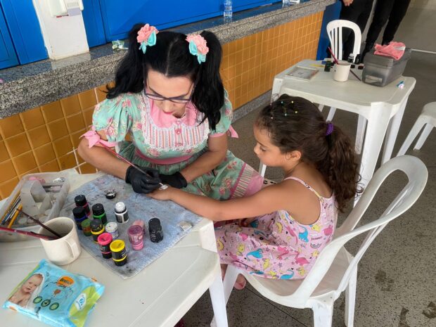 Outra ação de destaque dentro do programa é o projeto de pinturas faciais, “Pintando o 7”. Por trás da ação lúdica, há a estratégia de promover vínculos de confiança entre os integrantes do programa e as crianças. A sensação de acolhimento e segurança pode incentivar que os pequenos relatem suas rotinas cotidianas e possíveis problemas familiares ou escolares, como abuso ou outros tipos de violência.