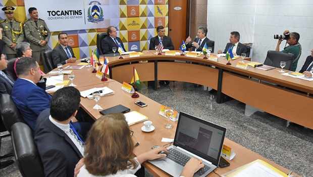 Os governadores do Estado do Pará, Helder Barbalho, Mato Grosso, Mauro Mendes, Amapá, Waldez Goés, Amazonas, Wilson Miranda, Rondônia, Marcos Rocha, Maranhão, Flávio Dino e representantes do Estado de Roraima e Acre foram recebidos no Palácio Araguaia pelo governador do Tocantins, Mauro Carlesse, para reunião e apresentação da carta elaborada por seus secretariados.