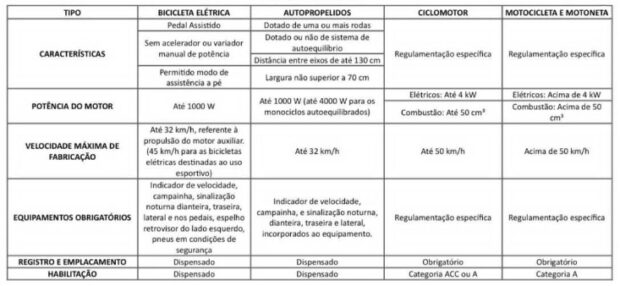 - Será obrigatório que as e-bikes tenham indicador de velocidade, campainha (buzina), iluminação (ou sinalização) noturna dianteira e lateral e espelhos retrovisores.